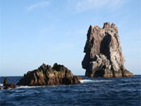 Te Paepae Aotea ( Volkner Rocks ) consist of three andesitic rock stacks or pinnacles that rise to approximately 113 metres above sea level. The pinnacles are geologically linked to the active andesitic volcano of White Island. Large schools of pelagic and reef fish are found within the boundaries of the marine reserve and some species are locally rare due to the unique convergence of oceanic and subtropical currents at this southern location. This is a also place of great significance to Ngāti Awa and other iwi of the Mātaatua waka. It is the departure place for the spirits of all people from Mātaatua iwi.