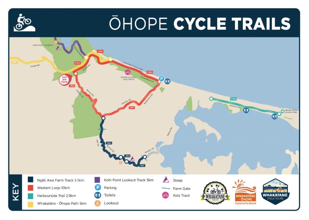The Trail is 2.9-kilometres of shared-use pathway that runs along the harbour edge, from Waterways Drive in the west to Port Ōhope Wharf. The Trail takes in views of the Ohiwa Harbour and the wildlife that call it home, there is also a playground along the way that has toilet facilities.