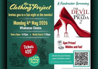 Calling all fashion lovers in Whakatane. Join us for a lively evening featuring a screening of The Devil Wears Prada 2. This stylish event brings together fashion, film, and community, all while supporting The Clothing Project’s important work. Connect with fellow locals, enjoy the movie, and be in to win spot prizes throughout the night.