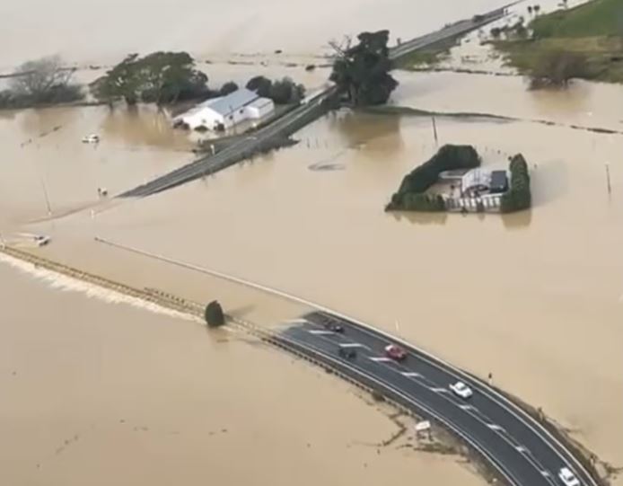 Footage taken by Bay of Plenty Helicopters showed the extent of the flooding yesterday after 24 hours of heavy rain.