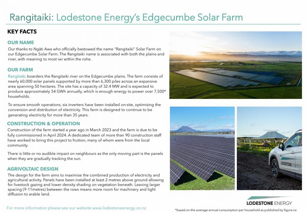 Lodestone Energy, New Zealand’s leading solar generation company, is continuing to deliver new renewable energy at pace with its second utility scale solar farm, Rangitaiki, now producing power in the Bay of Plenty region.