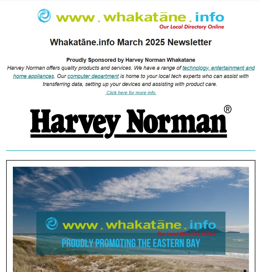 Welcome to the March Whakatane.info newsletter! Click here to read the full edition.